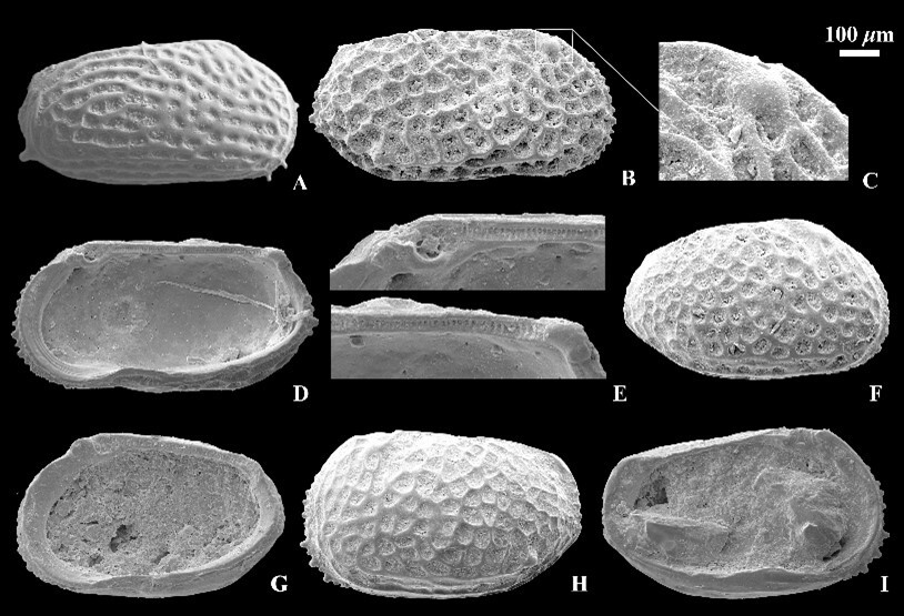 图1 柴达木盆地海相介形类化石Bicornucythere bisanensis s.l. (A) 和Pistocythereis bradyformis (B-I)
