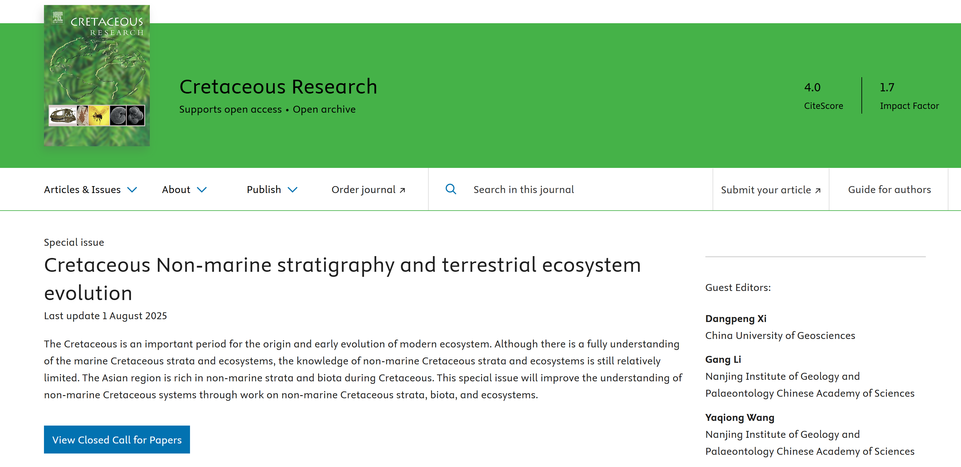 专辑相关信息:Cretaceous Non-marine stratigraphy and terrestrial ecosystem evolution,Cretaceous Research. https://www.sciencedirect.com/special-issue/10HHZ83RC8K.