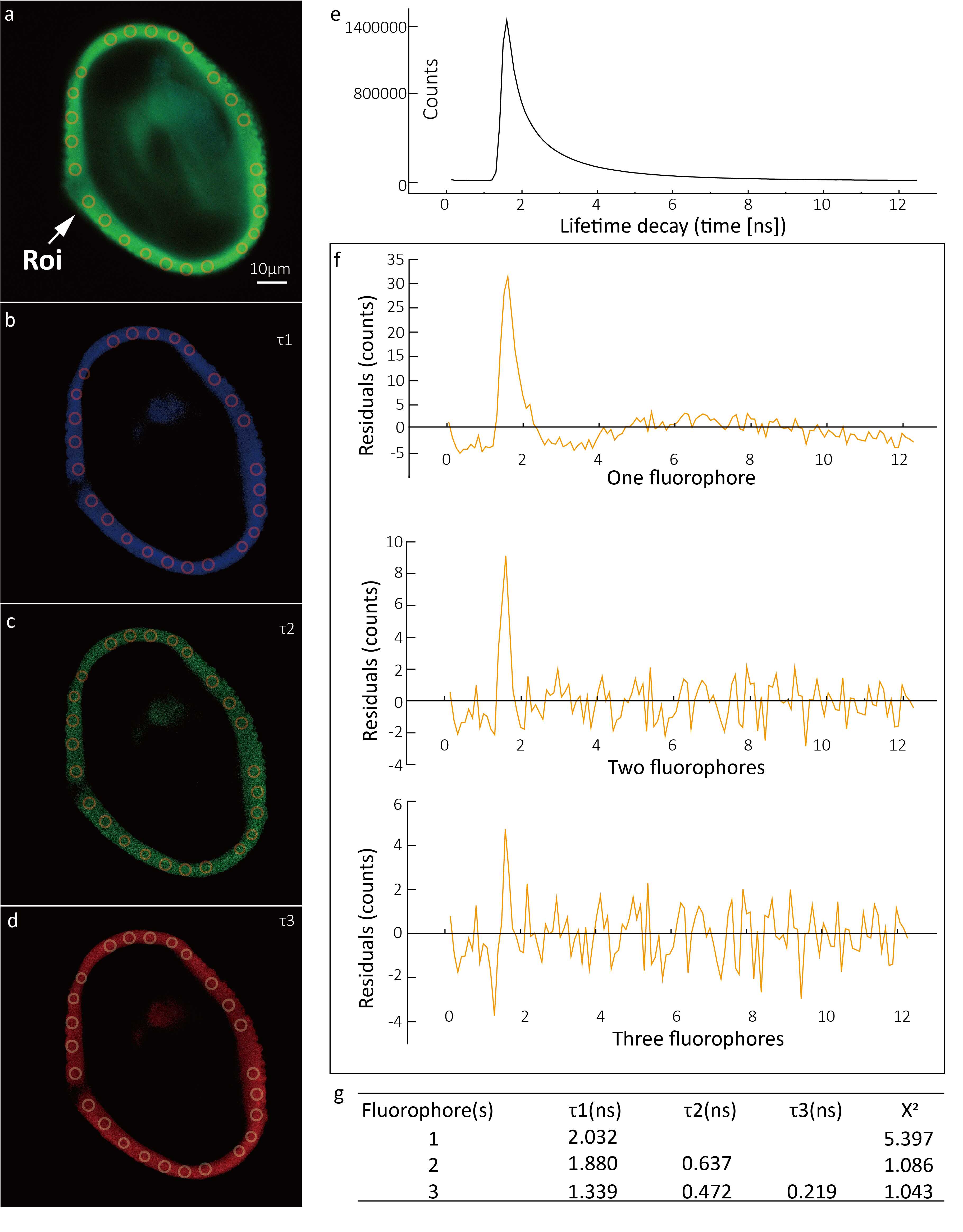 图3. 海桑花粉荧光寿命成像数据与分类结果
